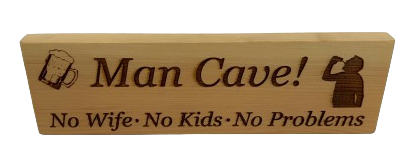 Engraved Wood Sign, Man Cave, No Wife, No Kids, No Problems.