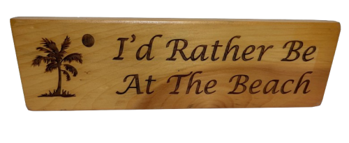 Engraved Wood Sign, I'd Rather Be At The Beach.