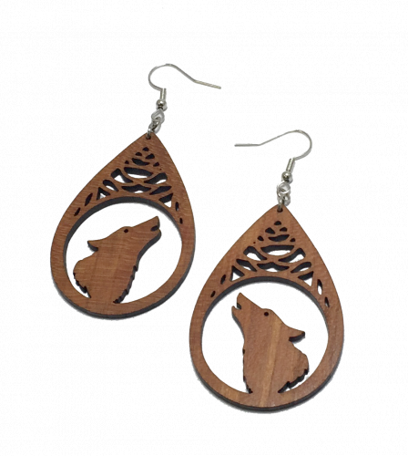 The wood earrings measure 2" x 1 1/4" with a 1" drop.