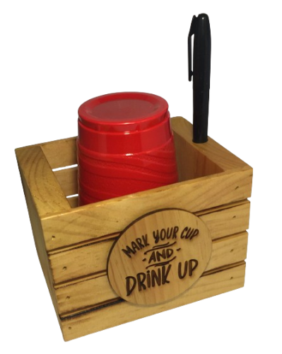 Mark Your Cup and Drink Up cup holder for partys. Each cup can be individually marked to save on cups at partys. Marker included.
