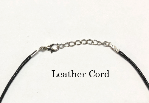 Chain size 18" also available with leather cord, both have Lobster Claw Clasp.